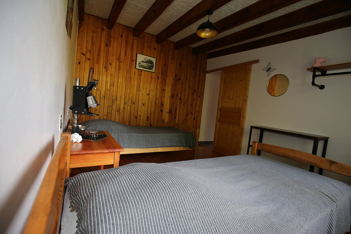 Une très grande pièce de vie avec cuisine et salon vous accueillera et vous conduira à l’espace couchage constitué de deux chambres ; l’une équipée d’un lit double et l’autre, de 2 lits simples. Une grande salle de bain avec douche et toilettes sépare les chambres.