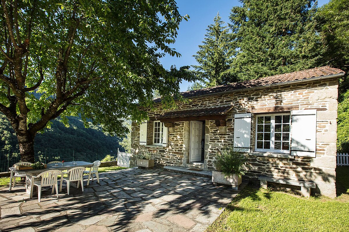 "Le Cerisier", à l’architecture typique des maisons du Haut Languedoc, est indépendante et se situe légèrement en retrait des autres maisons, en lisière de forêt.